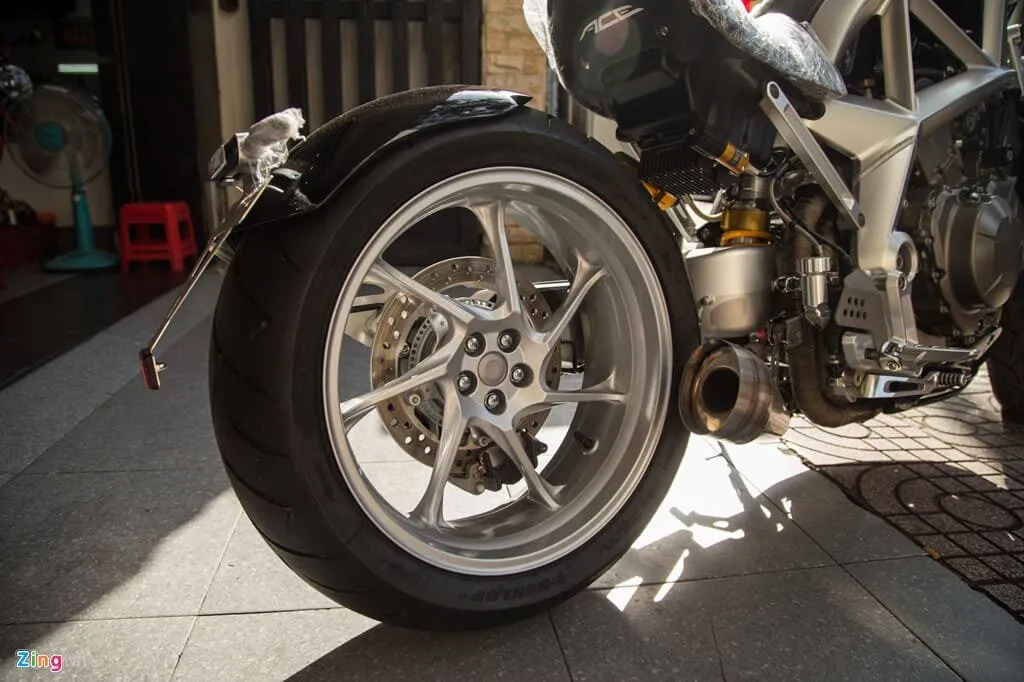 Ống xả làm bằng thép không rỉ, có thiết kế ngắn để khoe trọn bộ mâm 17 inch phía sau. Ariel trang bị phanh đĩa đôi 320 mm phía trước và phanh đĩa đơn 276 mm phía sau.
